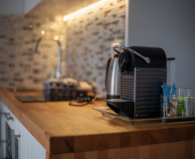 Het heeft een compacte living met een complete keuken met koelkast (incl. vriesvak), twee zones inductie kookplaat en een combi-magnetronoven, nespresso machine. In het souterrain is de slaapkamer met twee éénpersoons bedden en een ruime badkamer met douche, wastafel en toilet.